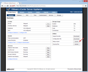 Once logged on, select the vCenter Server tab. Select the Setup Wizard, and click the Launch button. |