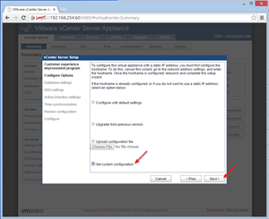 Select the Radio button next to Set Custom Configuration. Click Next. |