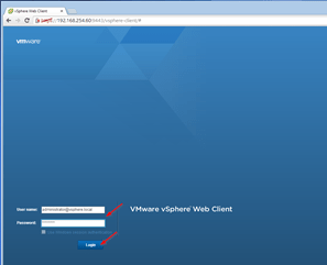 At the Web Client Logon Screen, Type the useranem and password: User Name: administrator@vsphere.local Password: VMware1! Note this is the SSO administrator username and password. |