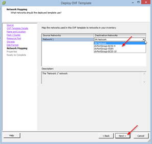 Select the Destination Network the Appliance will be deployed too. Click Next. |